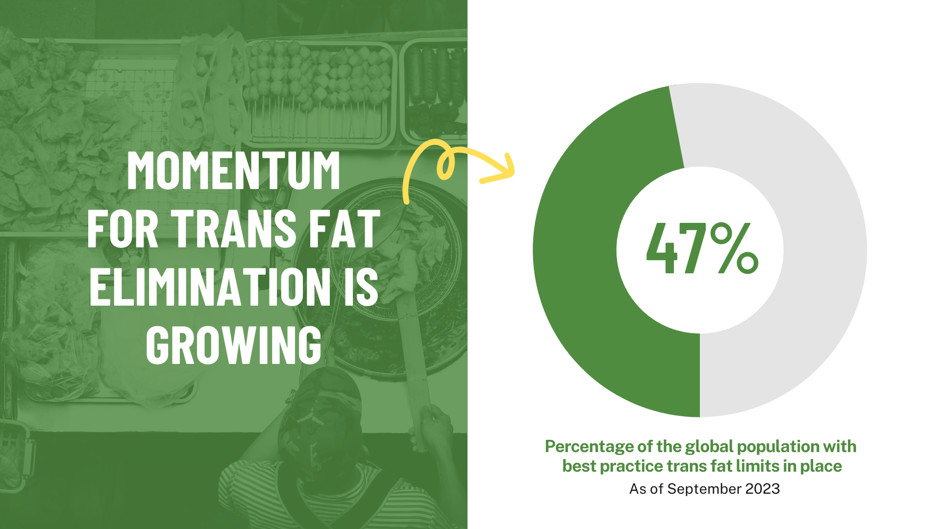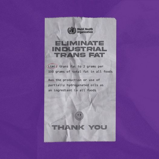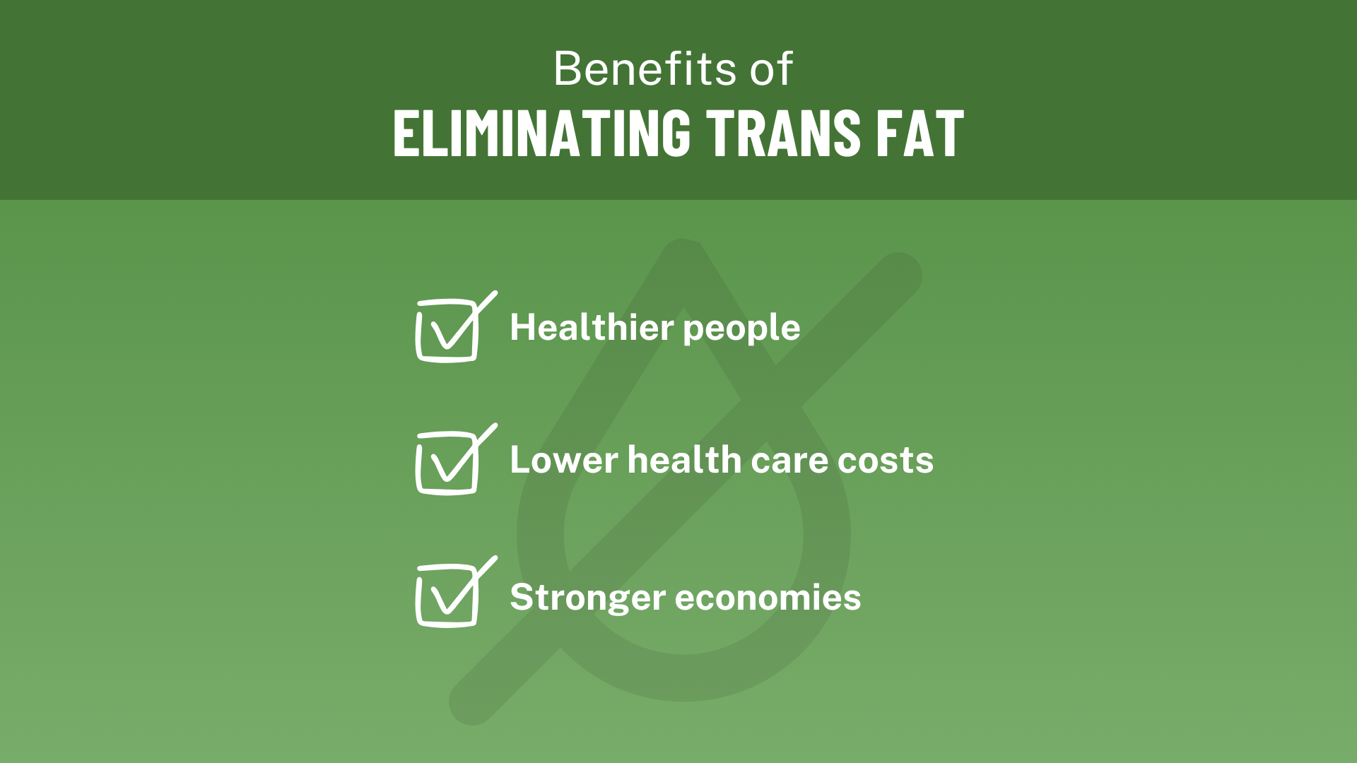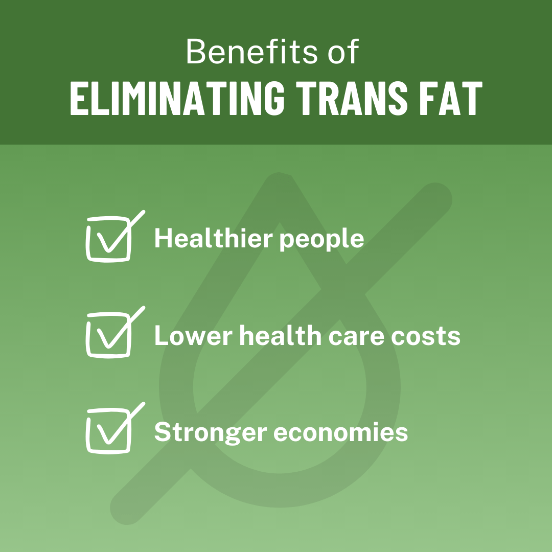 - We’re calling for an end to preventable deaths from trans fat consumption. [Country] should pass a best-practice trans fat elimination policy now.