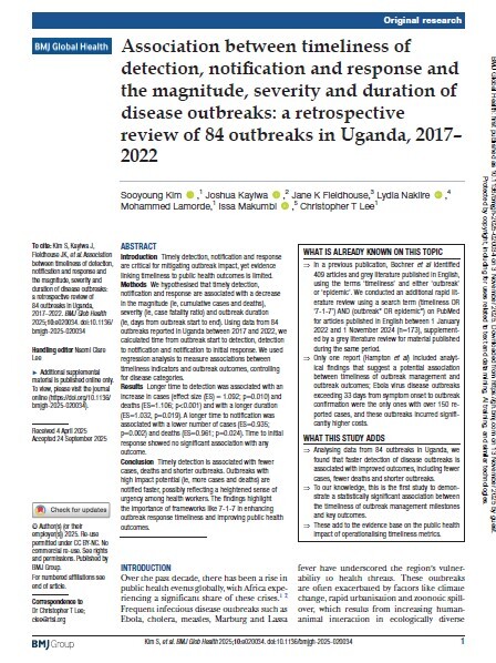 Timely detection, notification and response are critical to reducing the impact of outbreaks, yet evidence linking these factors to outcomes has been limited. In an analysis of 84 outbreaks reported in Uganda between 2017 and 2022, Resolve to Save Lives and partners found that delays in detection were strongly associated with higher numbers of cases and deaths and longer outbreak durations. In contrast, longer notification times were linked to fewer cases and deaths, likely reflecting that larger, more severe outbreaks trigger faster reporting. Our study found no significant association between time to initial response and outbreak outcomes. Overall, these findings underscore that faster detection is key to saving lives and shortening outbreaks, reinforcing the value of the 7-1-7 target to promote timely action.