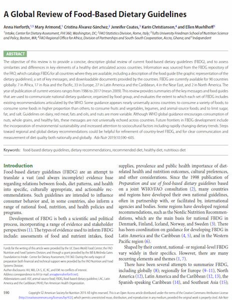 Review of current food-based dietary guidelines (FBDG), assessing the similarities and differences in key elements across countries