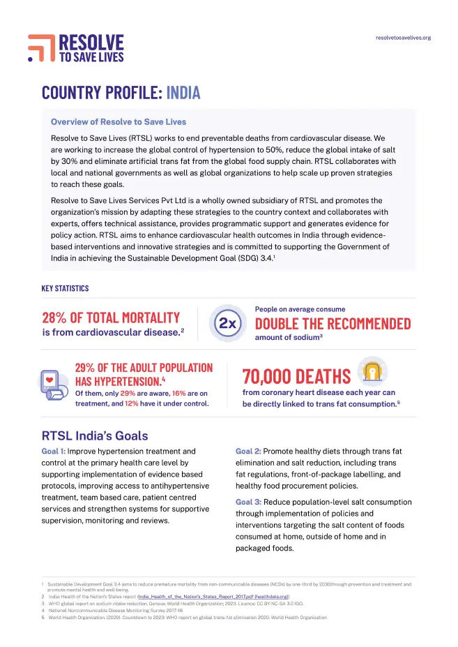 Learn more about how Resolve to Save Lives is working to end preventable deaths from cardiovascular disease in India.