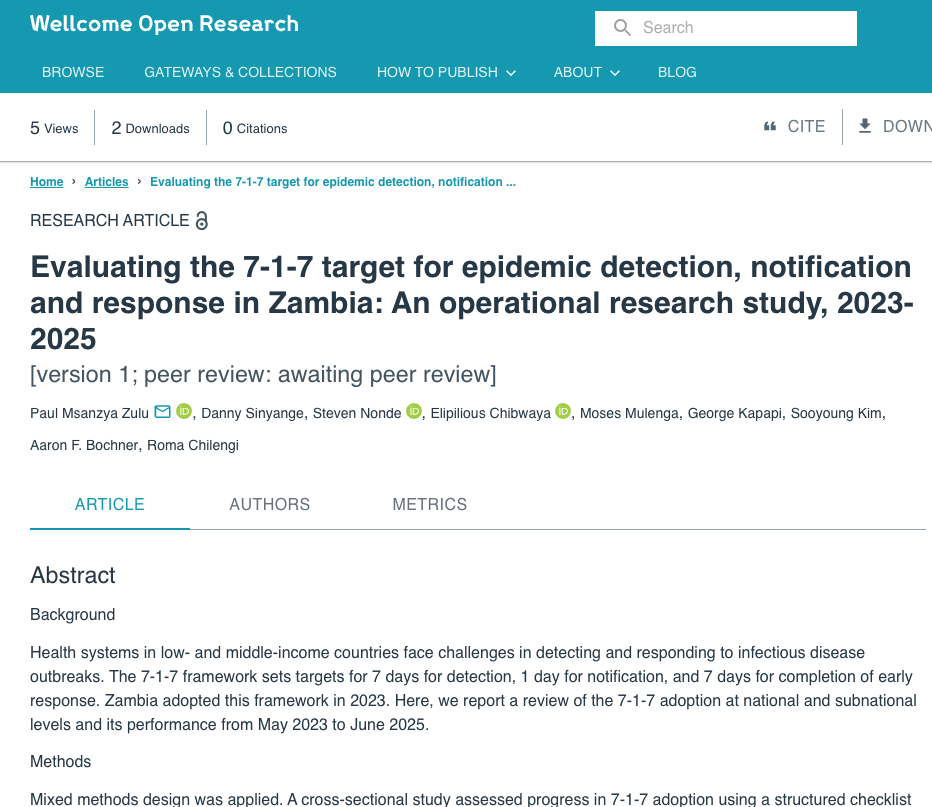 Wellcome Open Research article published on January 26, 2026. This study was conducted by 7‑1‑7 Alliance partners in Zambia and supported by the Wellcome Trust (228152/Z/23/Z).