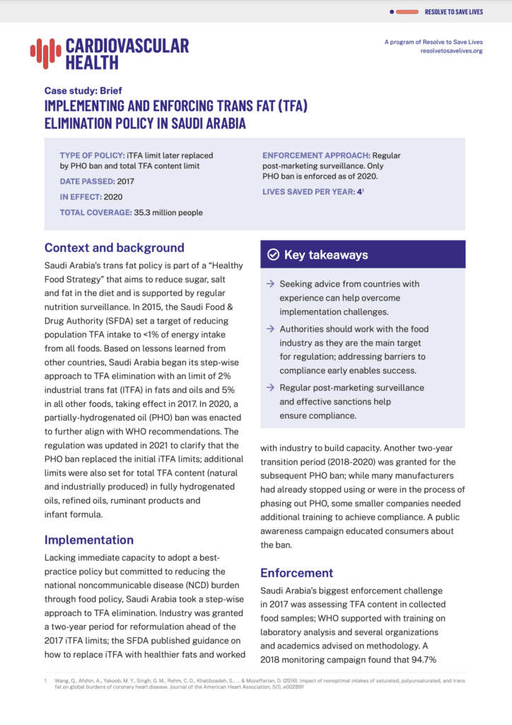 Summary of case study on the implementation and enforcement of Saudi Arabia’s trans fat elimination policy