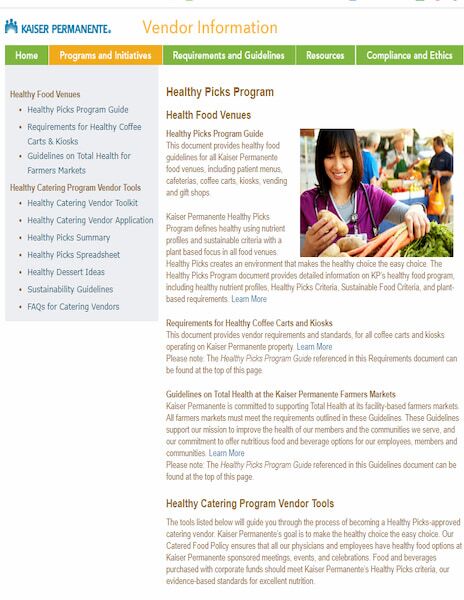 Describes healthy food guidelines and implementation resources for hospital food venues, including patient menus, cafeterias, coffee carts, kiosks, vending and gift shops.