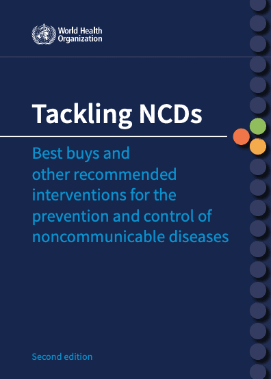 WHO’s updated list of “best buys” and recommended interventions for addressing NCDs, aligned with the extended Global Action Plan (2013–2030) to help countries achieve the nine voluntary NCD targets and advance SDG 3 on good health and well-being.